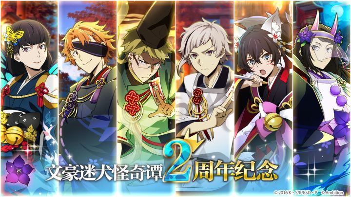 二周年活动预告③同期实装!「妖怪&阴阳师」系列主题,即将开启!活动一:期间限定&阶段上升扭蛋-妖怪&阴阳师~ 化身为阴阳师与妖怪的限定角色,将在期间限定扭蛋中登场!限定角色会在【侦探社妖怪奇谈】活动中变身特效角色!活动时间:8月5日16:00~8月19日12:59②阶段上升扭蛋:到达第三阶段必得SSR角色*1,到达第五阶段可获得SSR【阴阳师】国木田独步、 SSR【阴阳师】谷崎润一郎、