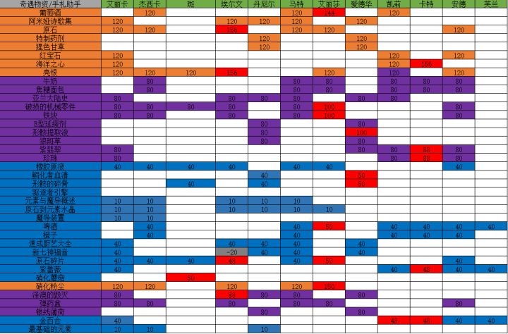今天给大家分享下奇遇物资和羁绊任务的搭配。红色的是超常—相当于你送这个礼物给他们好感度会多一点。灰色的就很尴尬了还会减好感度。话不多说,见图为证。