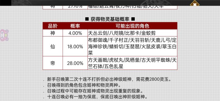 第一个和最后一个你确定没有问题・_・?按照最后一个,我十连没出神😂