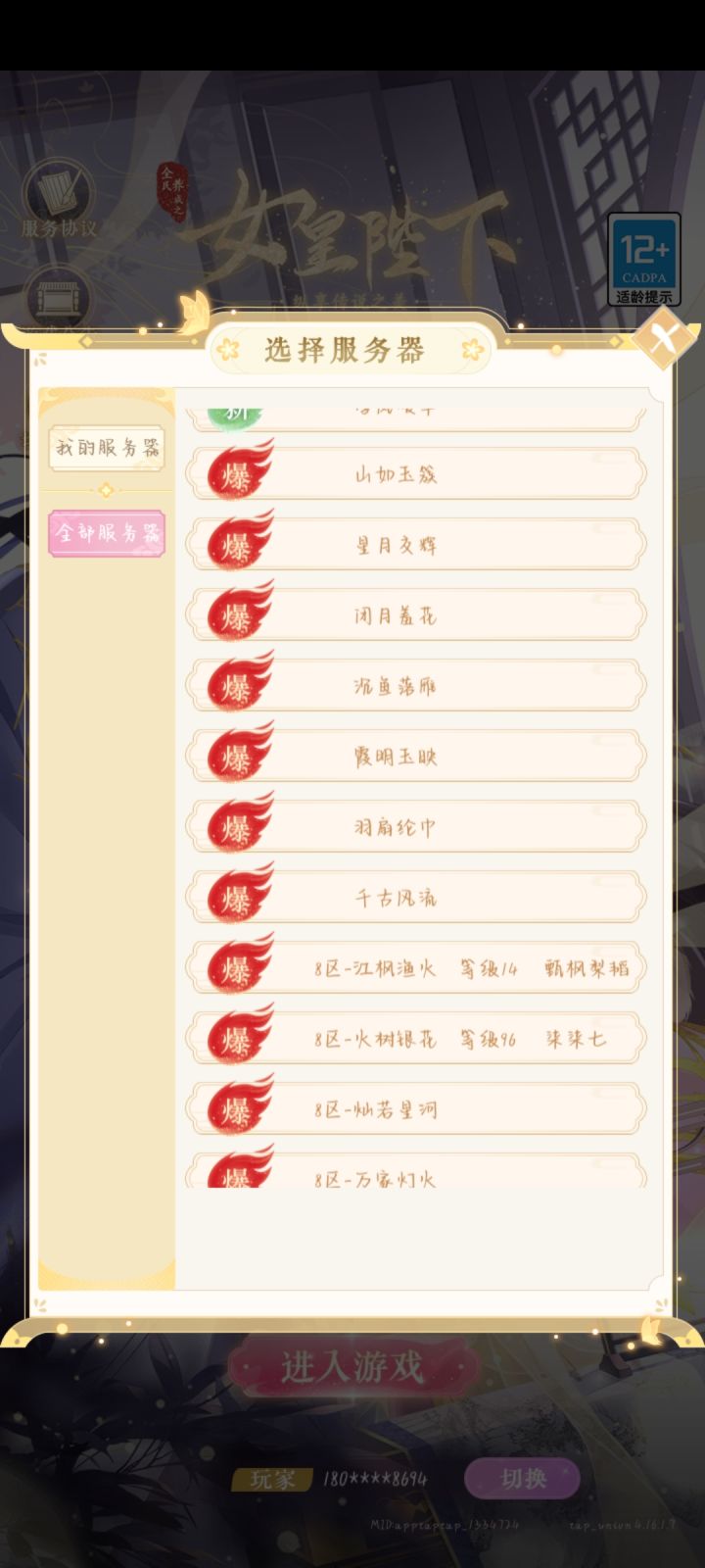 谁能解释一下为什么换个手机号登陆就找不到火树银花这个区了呢
