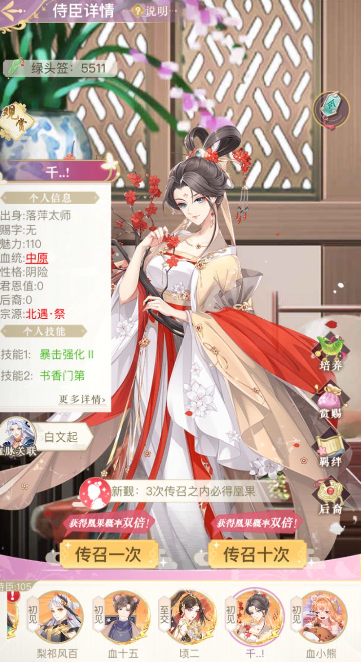 因为一服的白泽全是氪金出来的,低魅的都有一百多紫,除了大佬大多数人会选择买稀的刷,我买了个高魅半白泽,接了十几个白泽一,二图鉴的订单,限时两星期的(笔墨活动出来很久才接的),后来游戏出了出了十连传召,我就想着给自己刷点东西,在十连出来第三天就只剩一千五牌子了,当晚就用完了,这才想起白泽订单的事。后来拖了三四天才把十几个娃子生出来了。希望官方能设一个能赚大量绿头牌的技能或血,拜托了