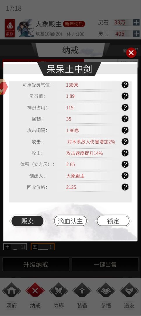 嗯哼,应殿主要求写个帖子,文采不好大家慢点看,第一我是踩了所有萌新坑,所以,写一下心得,,废话不多说,想到那说哪里昂,第一这个游戏那有些话毕竟专业导致好多人看不懂,然后弃游。那么看这里,如上图神识可以控制武器,根据自己额满载神识和神识总值看一下自己可以装几把武器,然后说一下副职业吧,到结丹期了玩家就可以自己创器图,丹方了,还有布道,画符,等,额重要的话简单说,先说布道,先白嫖,到线路图比如这