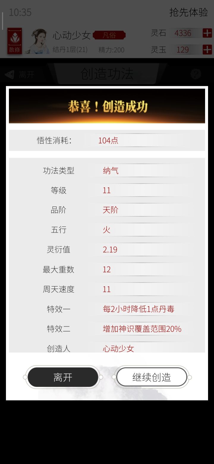 新服的功法路线看不了,各位布道师创功法一定要提前记住功法路线,还有对应灵衍,品阶什么的都可以不记,灵衍一定要记上。ps:这是借别人号创的功法