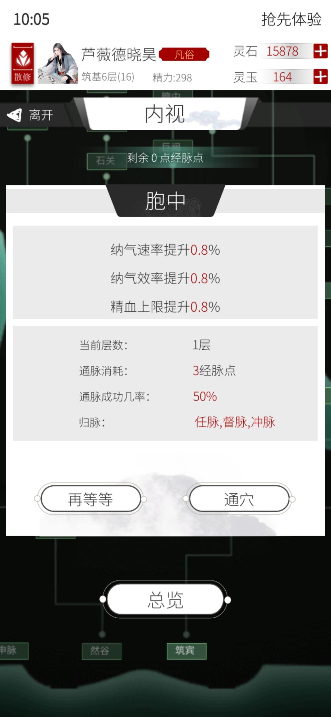 点完经脉不加相应属性的上限,我神识不够,点经脉可以加百分之0.5,第一次点完以后加了,但是之后两次点完都没加是为啥,莫非要点完以后突破了才重新计算上限?