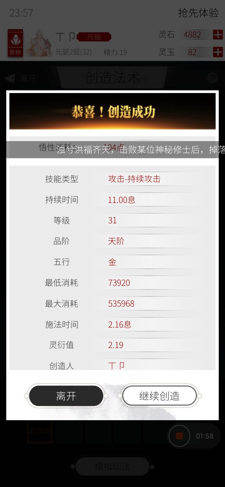 终于创造出天级持续攻击术法啦