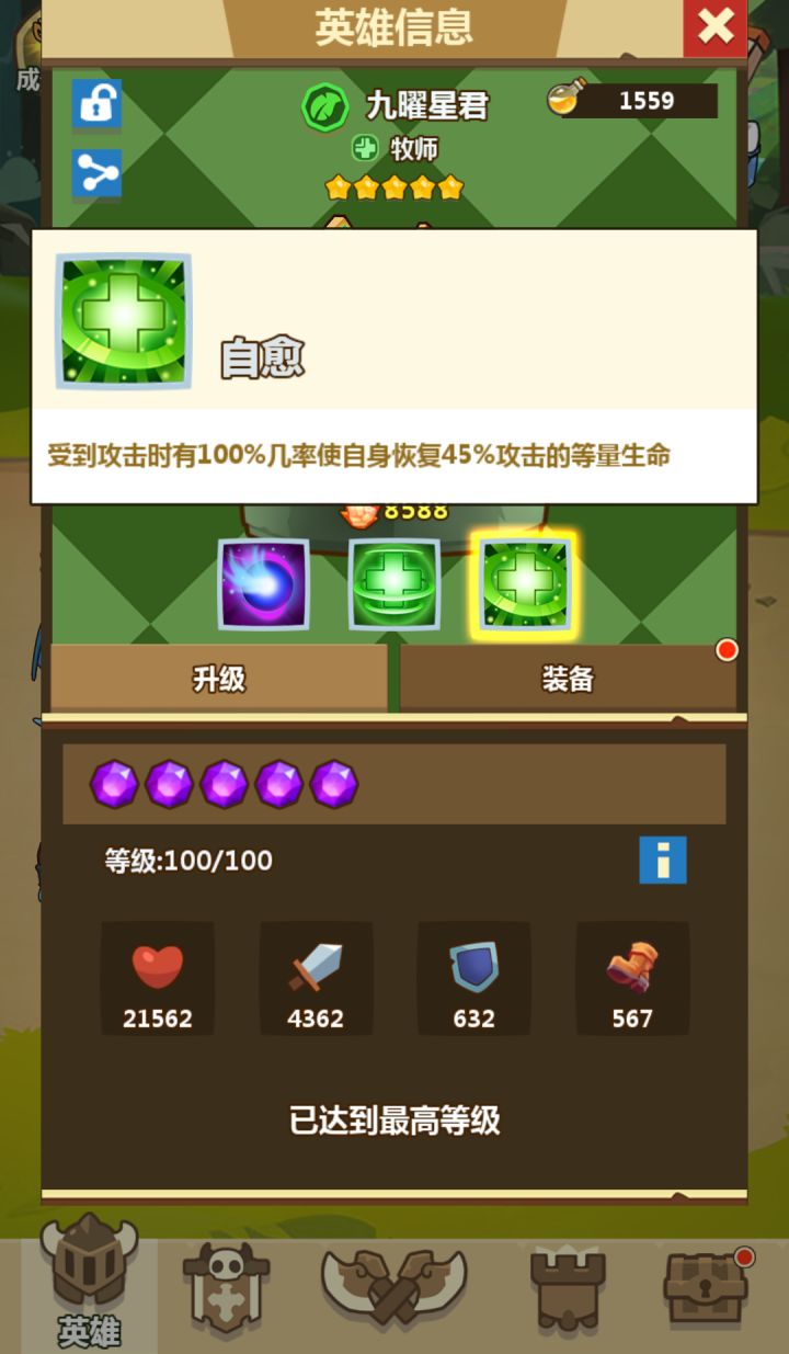 Hi 小伙伴们,今天为大家介绍一个肉盾英雄:森林阵营-七杀我们将进行技能和属性,以及打法的简单介绍,小伙伴们有额外提议的话请回帖喔^_^Y个性要强之人,做事干脆果断,为人义气,拥有优秀的统御能力七杀:我这一锤子下去你可能会晕。。。七杀(5星)面板数据(不含装备和神器加成)技能(5星)主动技能:眩晕对所有后排敌人造成100%佛你挂机伤害,有32%几率使目标眩晕2回合【ps:七杀的控
