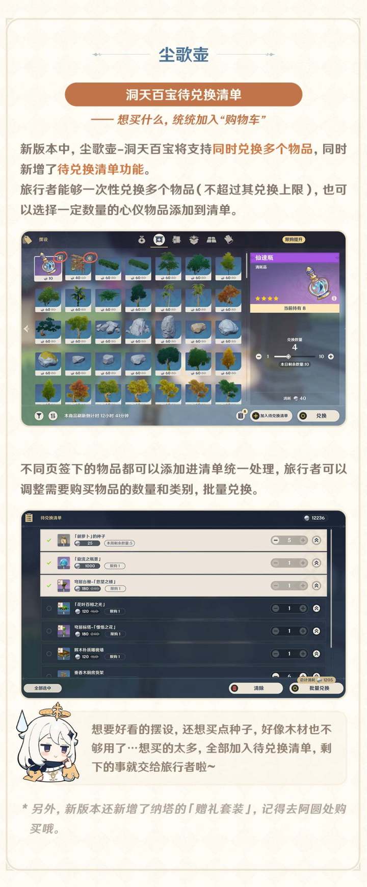 话不多说直接上干货! 1、角色UP:上半瓦雷莎+闲云,伊安珊陪跑;下半希诺宁+温迪。跟着新角色自然有新传说任务了。 2、开放新区域,沃陆之邦还有大火山以及里面的新BOSS等着大家啦!(这一块风土人情直播讲了还挺久) 3、版本活动blabla,有以前的小游戏返场哦。 4、系统的一些更新,和开发组座谈会的比较一致,主要是圣遗物相关的优化。 5、最后是和北京环球影城有联动。 嗯,至于原石嘛,飞飞放评论吧