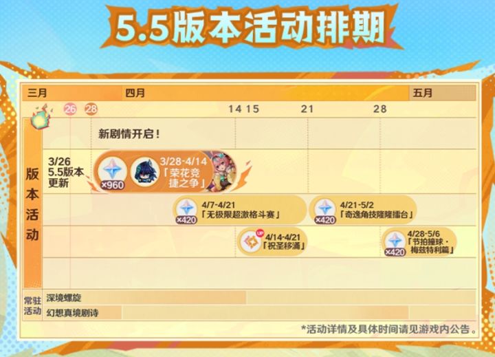 话不多说,咱直接进重点:1、原神5.5版本的前瞻直播3月14号今晚的晚上20点开播!想看直播的旅行者记得提前蹲点~2、可能UP的角色,首先确认的肯定是已经出了立绘的伊安珊和瓦雷莎,毕竟预告图上也有她俩,然后另外可能复刻的网上猜测有风神温迪,但考虑到预告图上还有火神和派蒙,那么会不会复刻玛薇卡?毕竟本地大版本UP两次主神也不是例外情况了。总之,还是等直播官方揭晓吧!3、随着新角色UP,新的