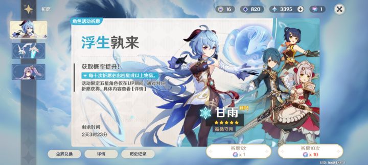 现在已经70抽左右了,一命水神稳了,接下来冲击二命水神。