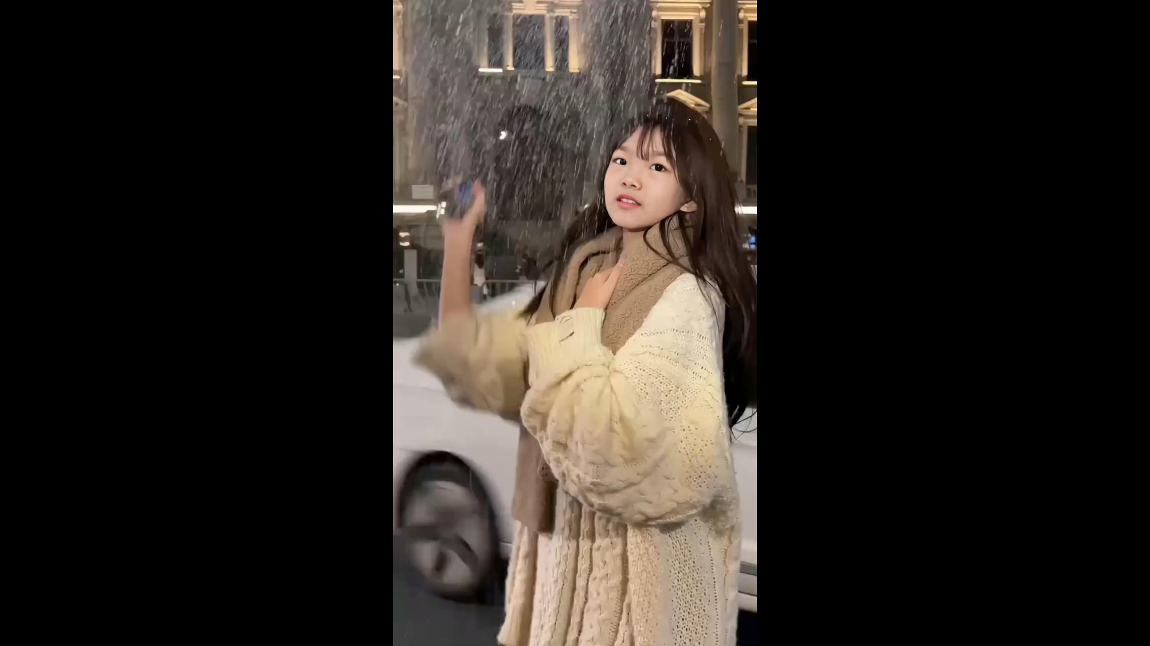 视频介绍总共就是在车旁边放泡沫玩