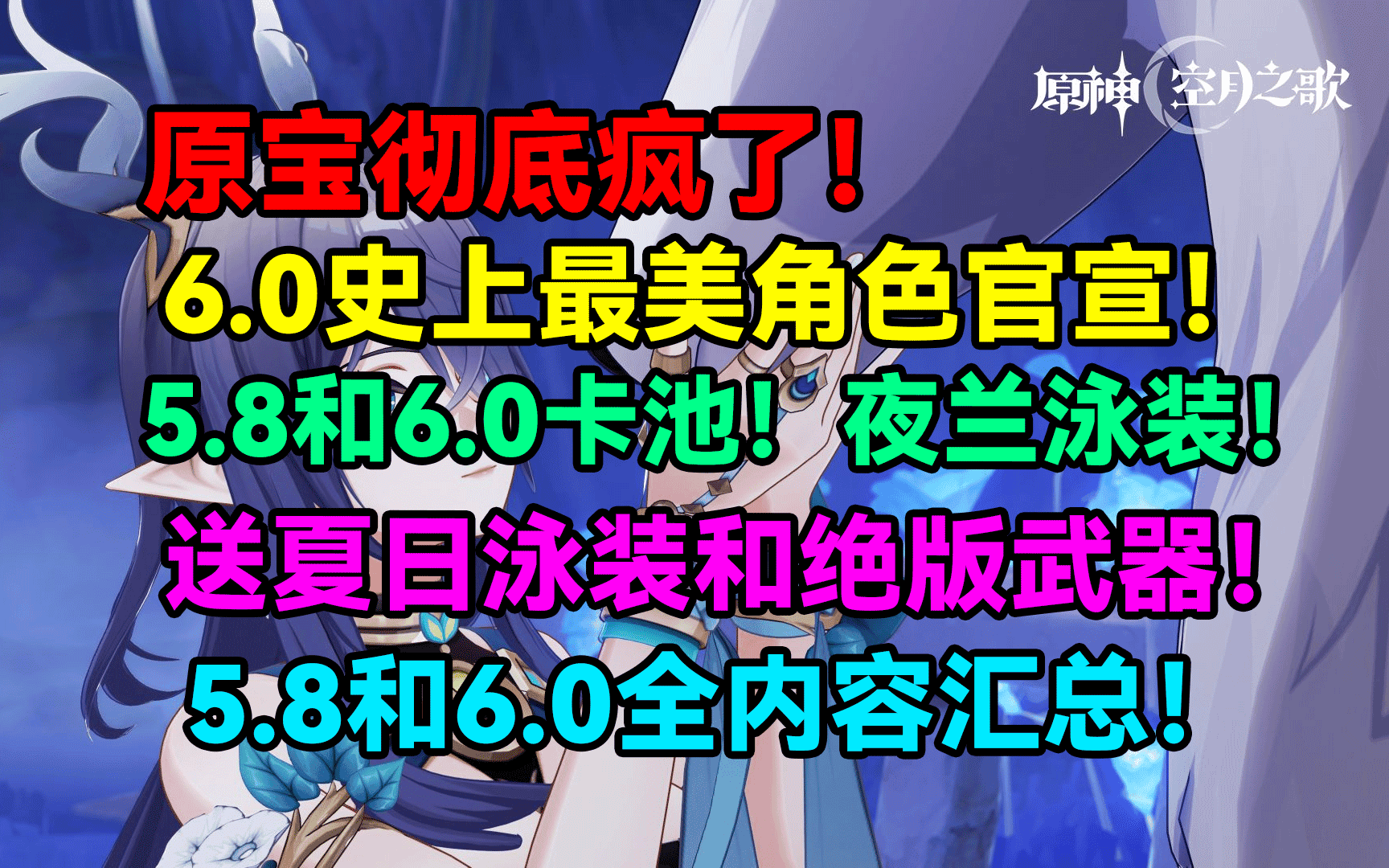 UID:148658053 原神彻底疯了!6.0史上最美霜月之子新角色官宣!5.8和6.0卡池!夜兰泳装!伊涅芙全面详解!送夏日泳装和绝版武器!300原石兑换码!5.8和6.0内容全汇总!
