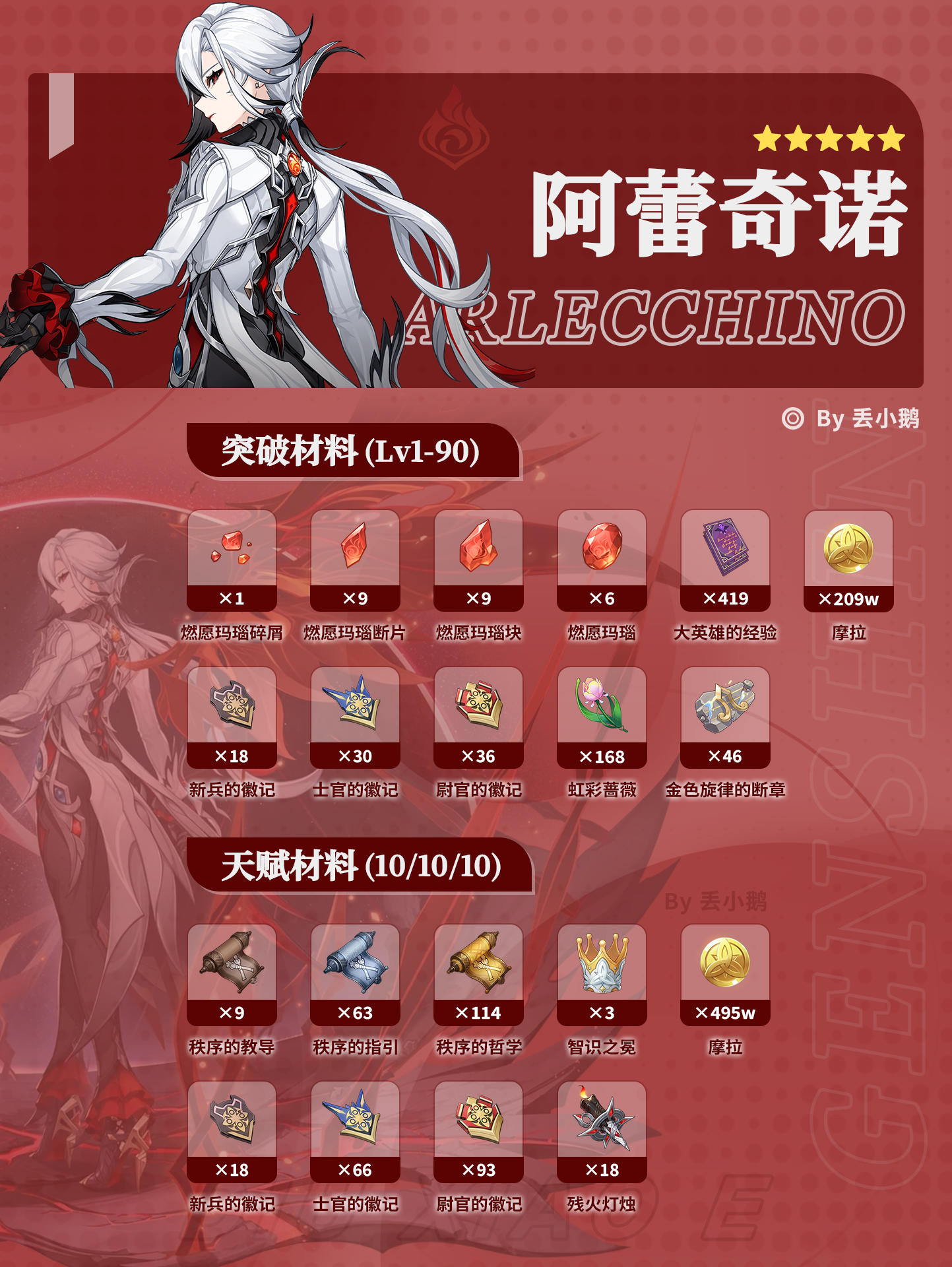 UID:185889661hi各位旅行者们大家早上中午晚上好呀,这里是为大家带来版本角色攻略的青枫本期为大家整理「阿蕾奇诺」的角色攻略,她是愚人众执行官第四席-「仆人」。沉静冷酷的外交官,「壁炉之家」所有孩子们畏惧又依赖的「父亲」。接下来以图鉴的形式简要解析「阿蕾奇诺」的养成参考,帮助大家快速了解角色及后续培养方向;▌图鉴概述目录1、角色信息板块:角色背景介绍、LV90属性面板、神之眼类