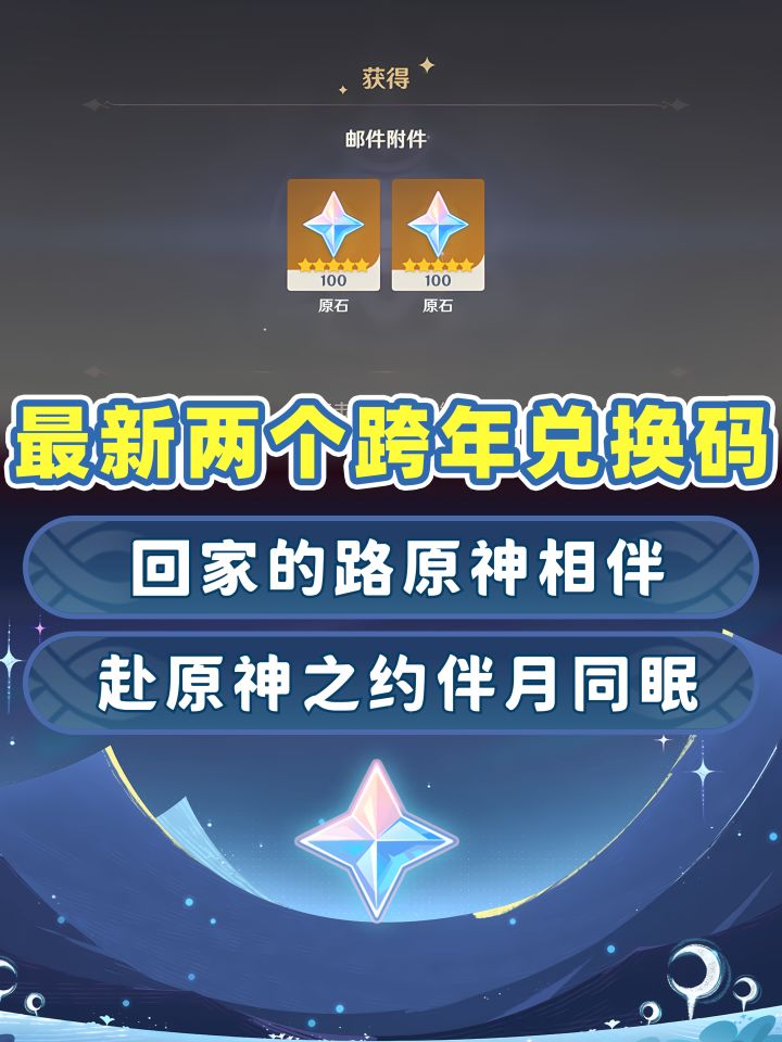 【月之三】原神最新两个跨年兑换码❗