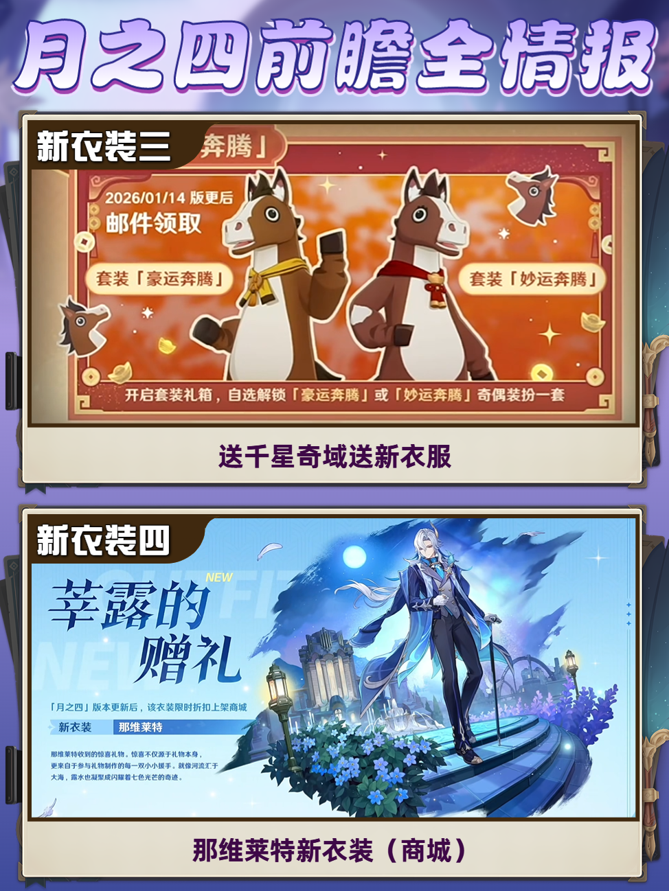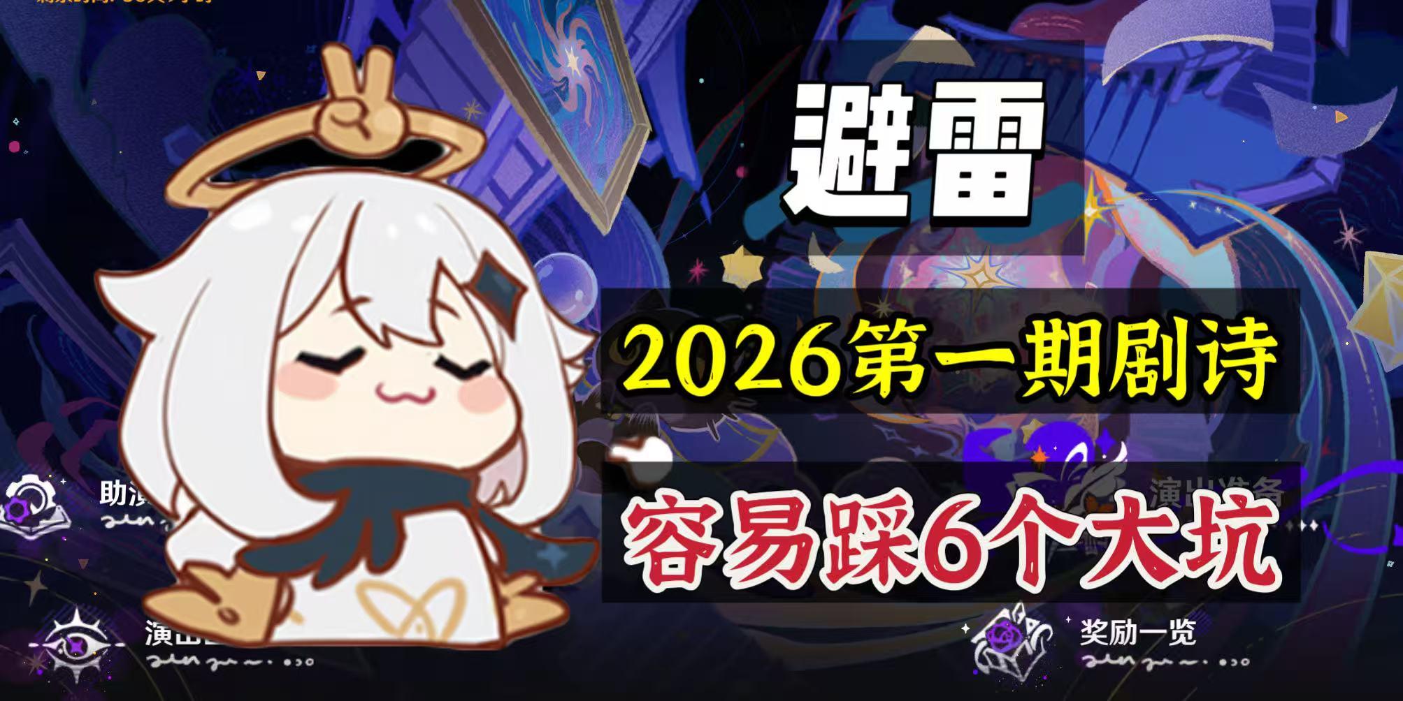 UID:101424396此次2026首期「1月幻想真境剧诗」更新!本期元素限制为火、水、雷,存在3个特殊BOSS,需对角色安排有一定规划。接下来冻梨会详聊角色排布与BOSS弱点分析,助你拿下本期幻剧奖励~一、角色选取建议「邀请助演」首选伊涅芙、菲林斯,同时自身携带爱诺,争取在第8幕之前拿到月感电队伍,可稳过此关。「特邀角色」其中温迪高频染火与柯莱燃烧都是圣牌挑战2的克敌好手,快速达成BO