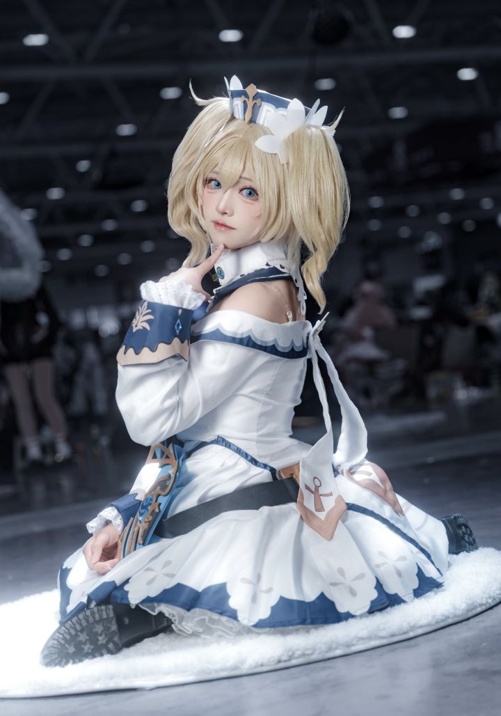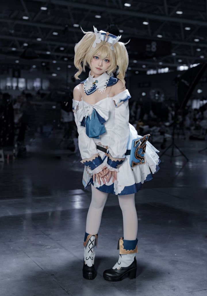 uid:504587464 这套芭芭拉的还原度堪称神级!蓬松的双马尾与发饰完美复刻了游戏里的造型,白蓝配色的裙装褶皱与蝴蝶结细节精致到令人惊叹。浅蓝眼眸里透着温柔又元气的笑意,双手轻握的站姿,将芭芭拉作为蒙德偶像的亲和感与治愈感展现得淋漓尽致。在漫展的冷调背景下,她宛如从提瓦特大陆走出来的鲜活少女,每一处细节都散发着清甜的光芒。 #原神 #原神月之四 #如果在冬夜一个旅人