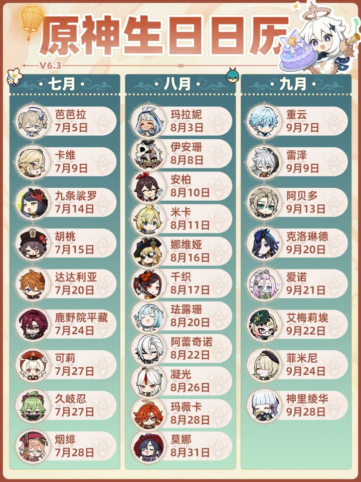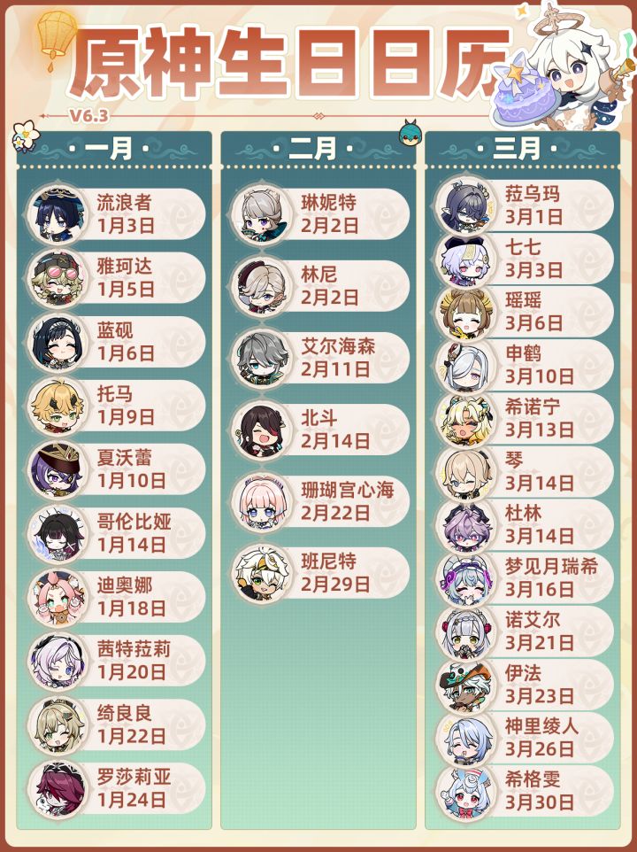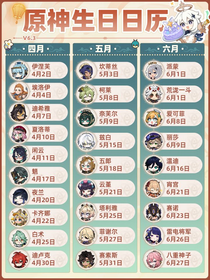 【月之四】原神全角色生日❗海灯节最新版