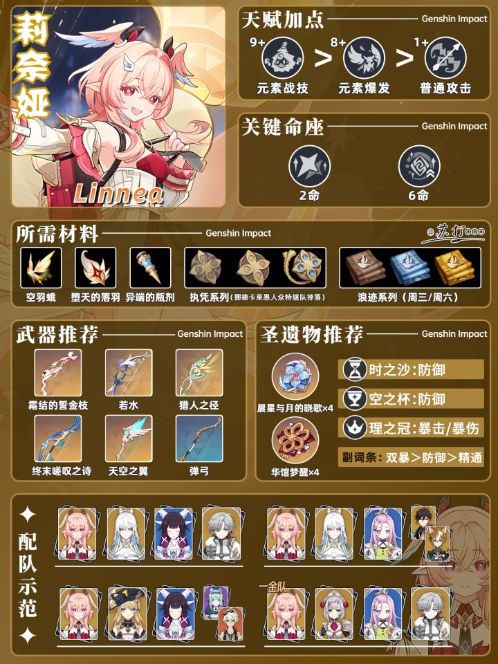【月之六】莉奈娅培养攻略|武器、圣遗物、配队、命座全解析