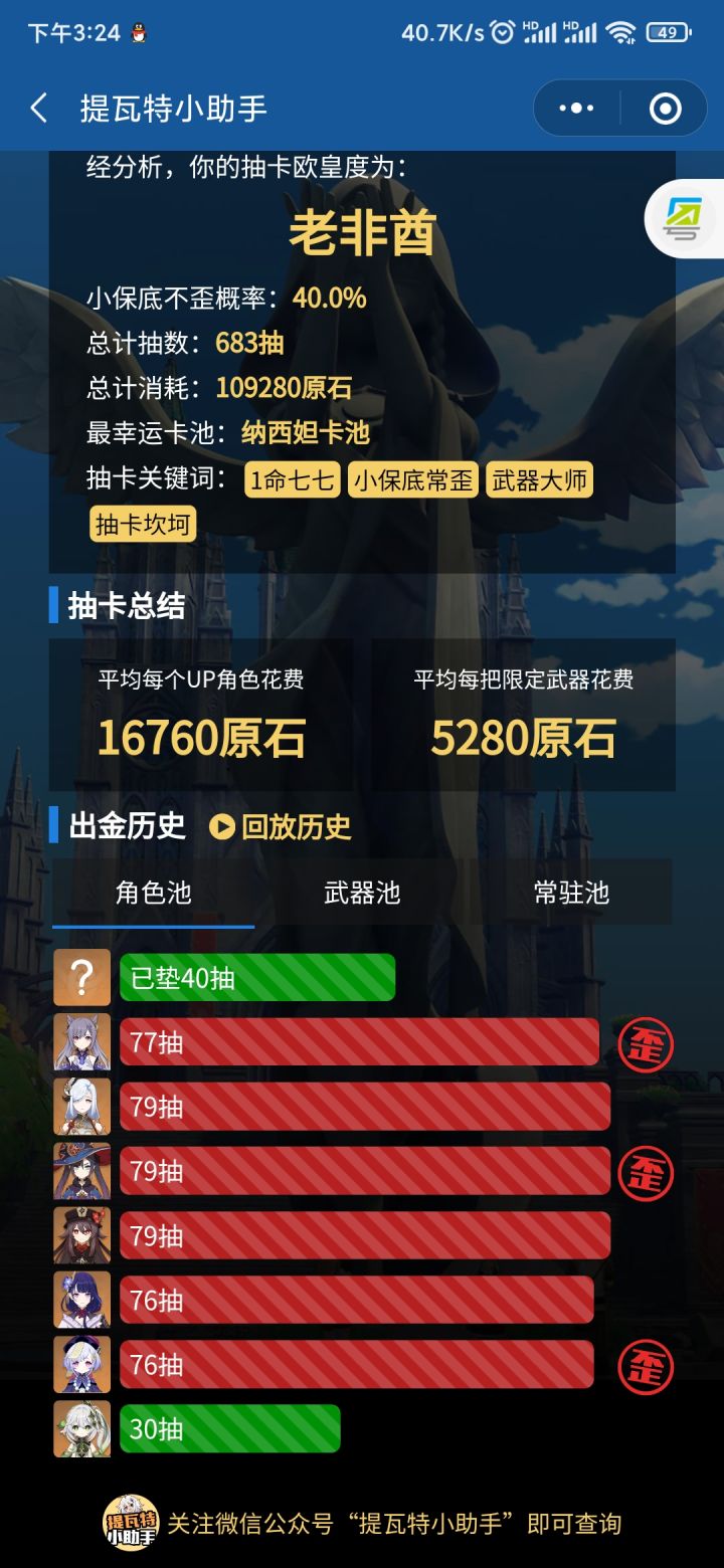 开服至今,除了常驻绿了一次,up池两个黄,全红,十几个红感谢米哈游在我退游前后依旧不忘初心,锁定非酋