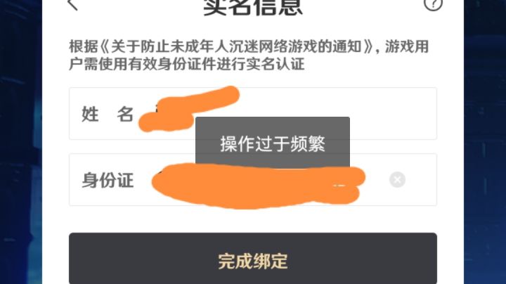 1、输好身份证,输好账号,每隔一段时间点一次,还是会显示操作频繁。2、加了网说不够安全,用流量又没反应。3、没有任何客服咨询键(建议添加)4、用Tap账号登录的验证码总是显示输入错误。5、主界面加入一些帮助按键,出了问题都不知道对谁说。 ————————————————————原神还是很不错的,希望官方给个回应。
