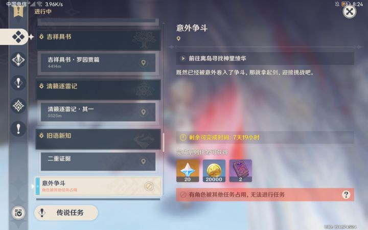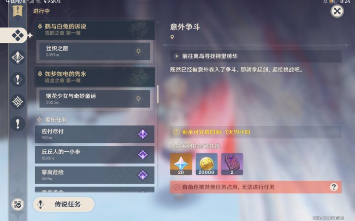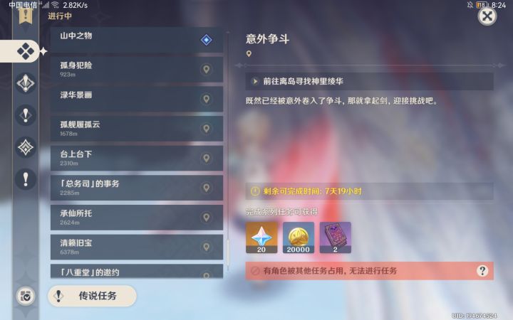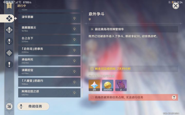 我真服了,谁能告诉我?这个任务是被谁占的?这上面,提示我是神里林华的丝什么之愿,可是里面没有啊!谁能告诉我,我该怎么办?😩😭😭😭😭😭😭😭😭😭😭,我还想抽胡桃没原石J,就靠这个,活动了