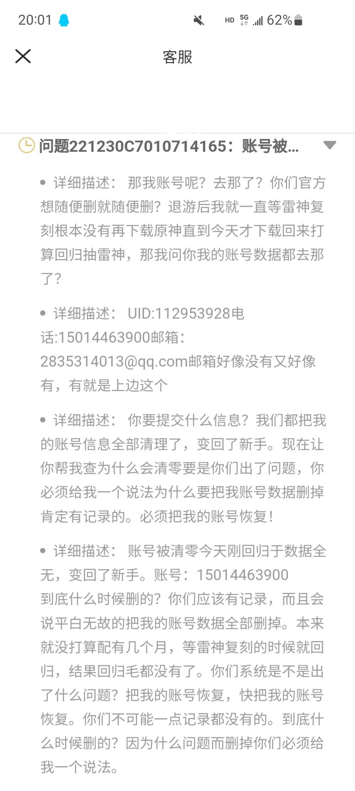 账号数据被删怎么办,客服根本不管三两句打发。急死人这是我今年一月份的截图现在连UID都没了从来没有借过给别人,官方问题米家真可怕氪的都打水漂了