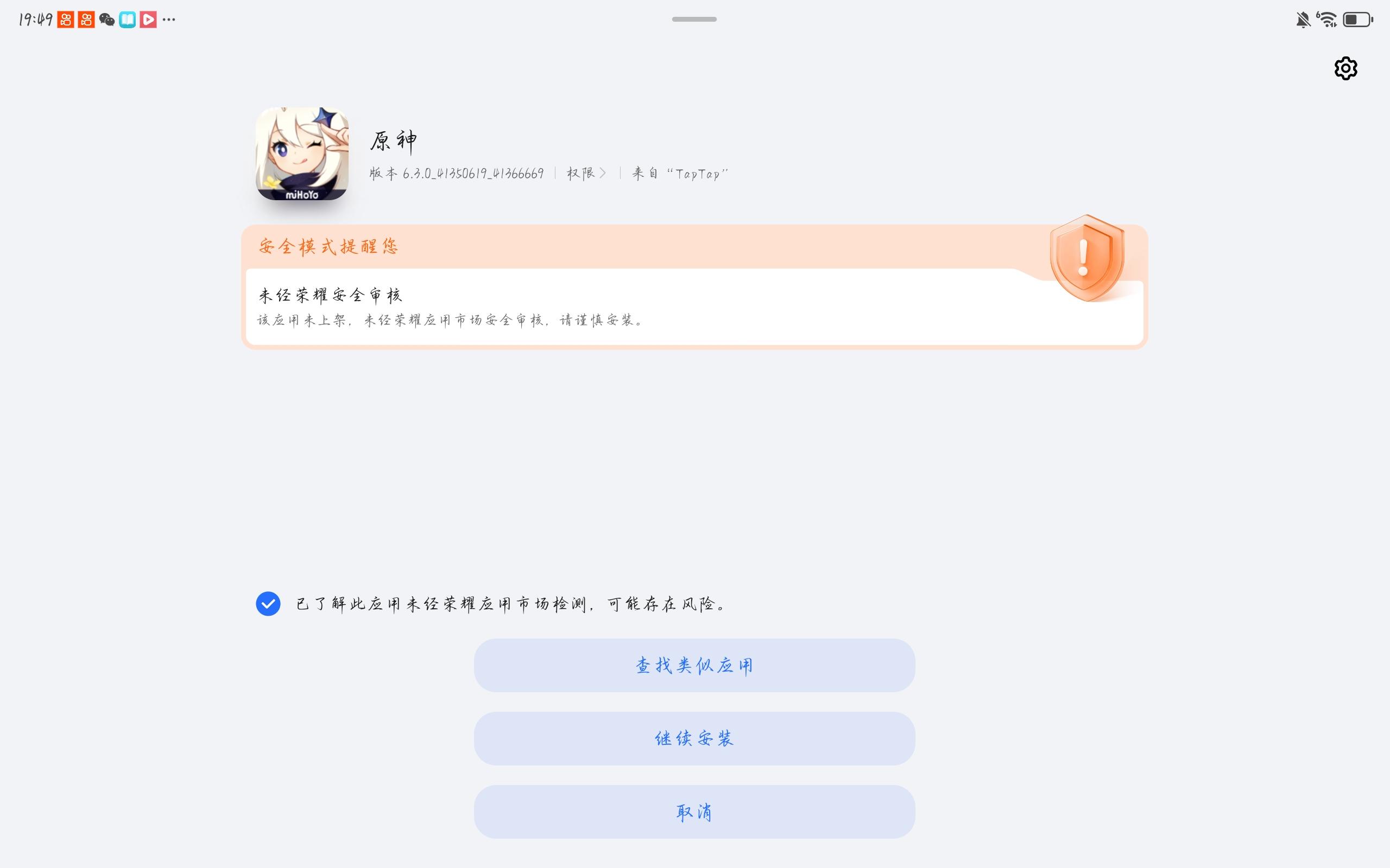 无法选择继续安装华为应用市场没有这款游戏无法进行更新