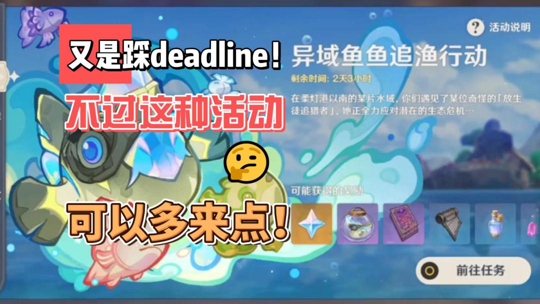 又是最后deadline完成活动…… 不过这种对手残党nice的活动哈基米官方真的可以多来点啊![表情_酷] #原神 #原来你也玩原神 #原神创作者激励计划 #异域鱼鱼追渔行动 #活动