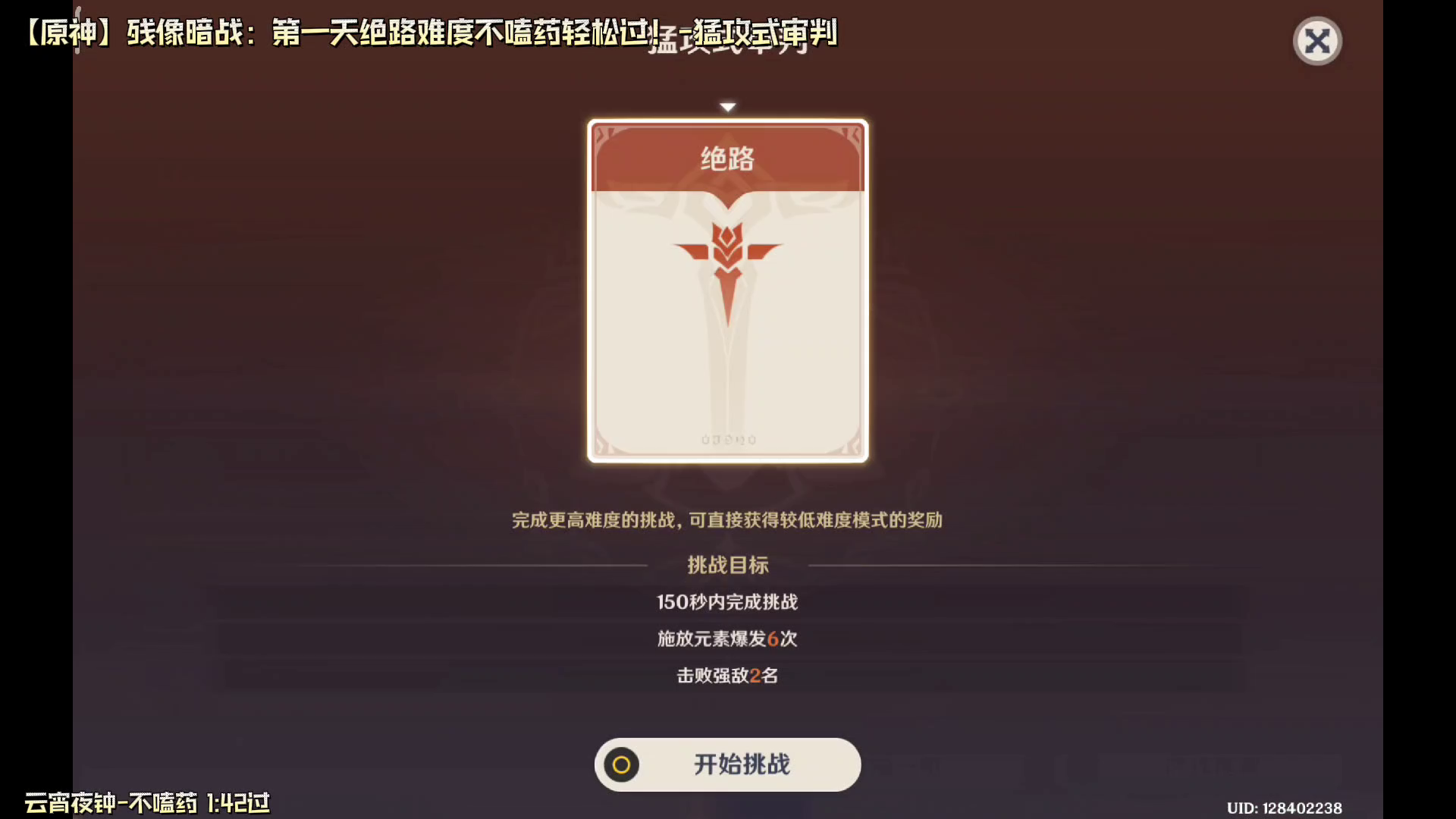 【原神】残像暗战:第一天绝路难度不嗑药轻松过!极致练度帅爆! 这个才是正片!