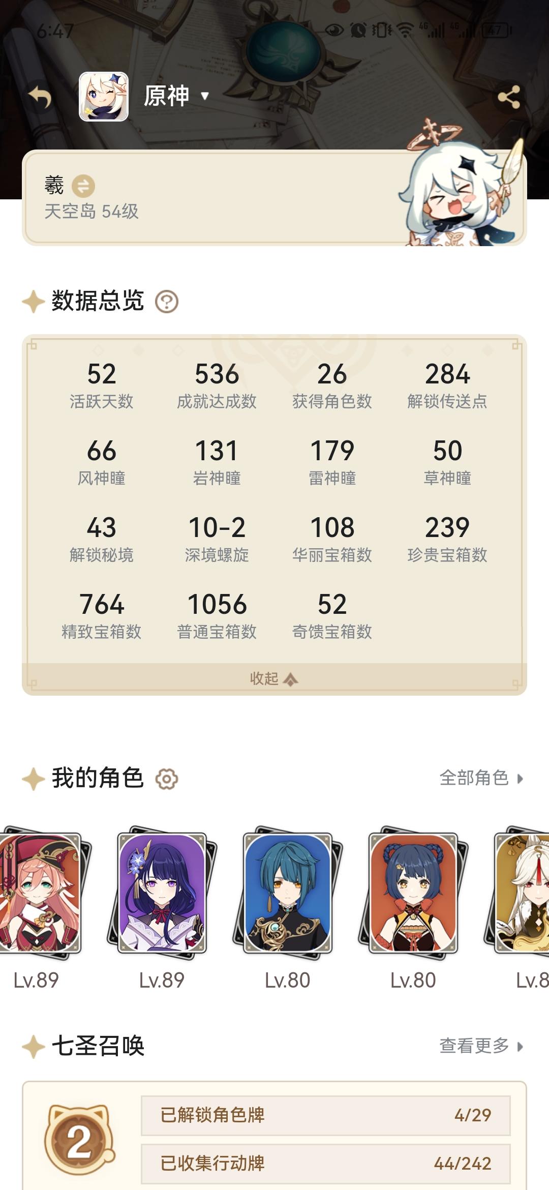 快成为8级猛新了,纪念一下在提瓦特度过的52天😋