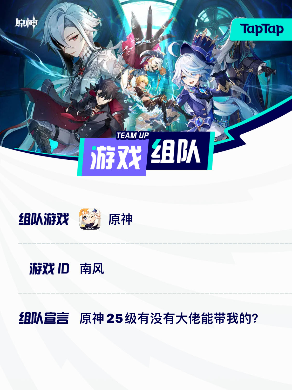 🚩游戏组队 ID:南风 宣言:原神25级有没有大佬能带我的?#噗噜噜实验室