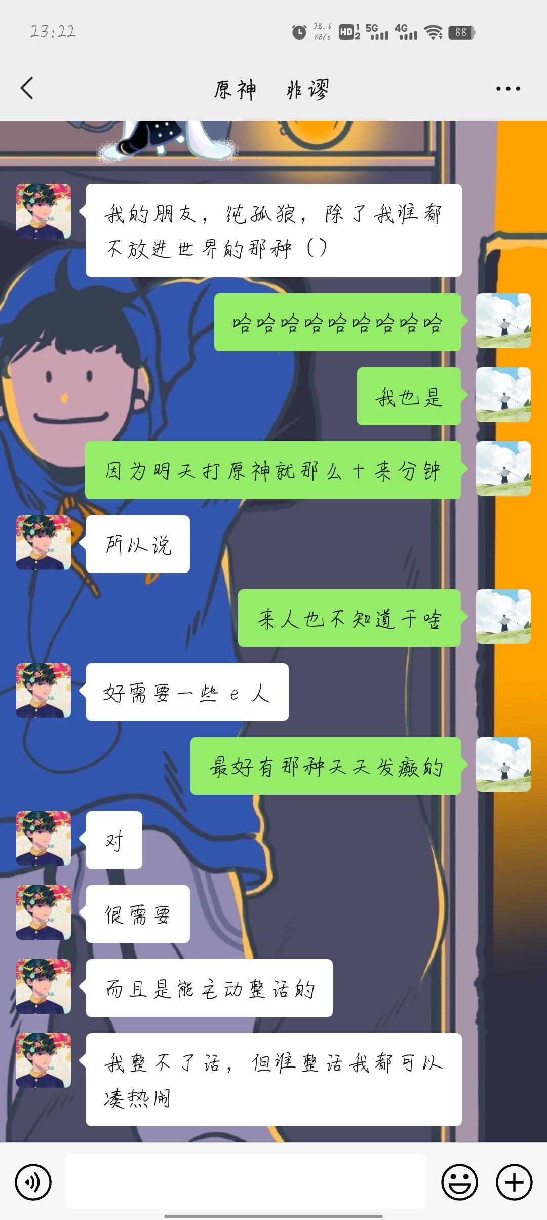 期待大家加入一起聊天,交流群里很多游戏大佬(不只有玩原神的)可以当成一个普通的聊天群哦728287242
