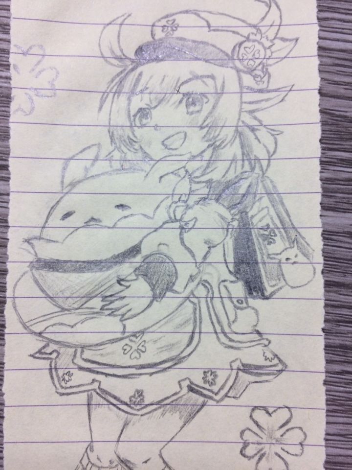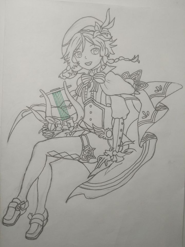 平时手绘画作,这次是温迪,虽然没涂颜色