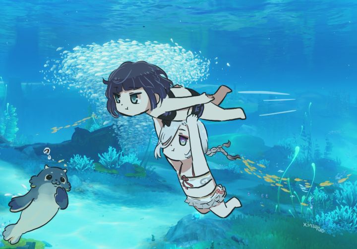 被瞬间浇透。共八图,来自小蓝鸟。#同人美图#原神