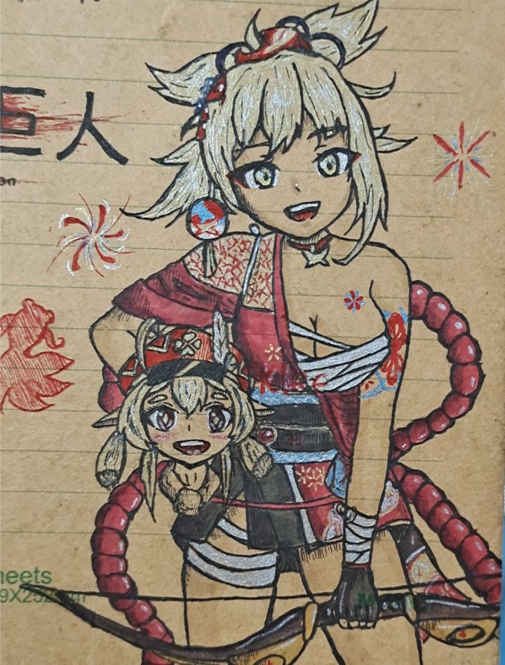 午休时间画在笔记本上的宵宫(业余爱好,勿喷)