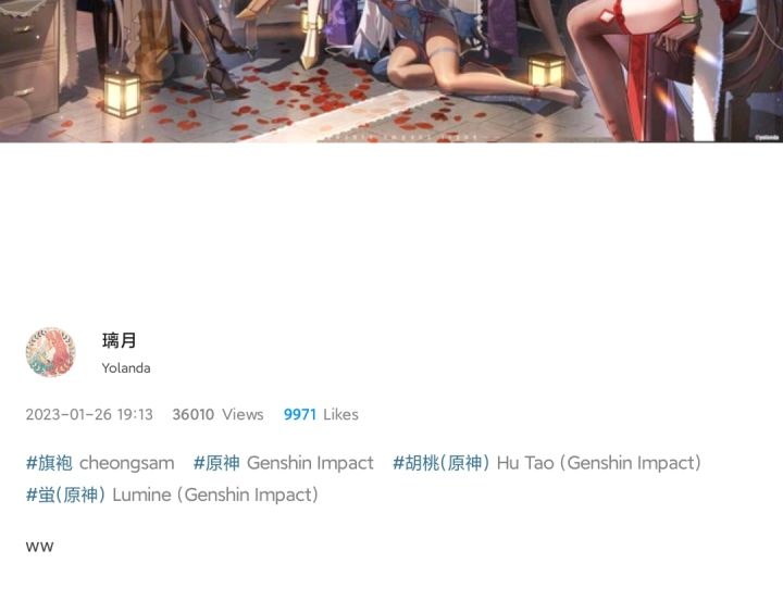 【今日份的同人搬运】胡桃和夜兰,大佬们都出货了吗?#游戏图文新春挑战#同人美图#胡桃#原神#夜兰#Pixiv#同人二创