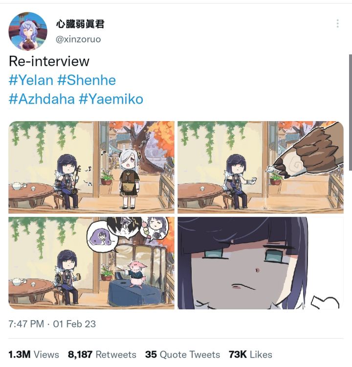 【今日份的同人搬运】直接端上心脏弱真君的最新更新吧。。。#游戏图文新春挑战#同人美图#原神#申鹤#夜兰#杂谈分享#心脏弱真君
