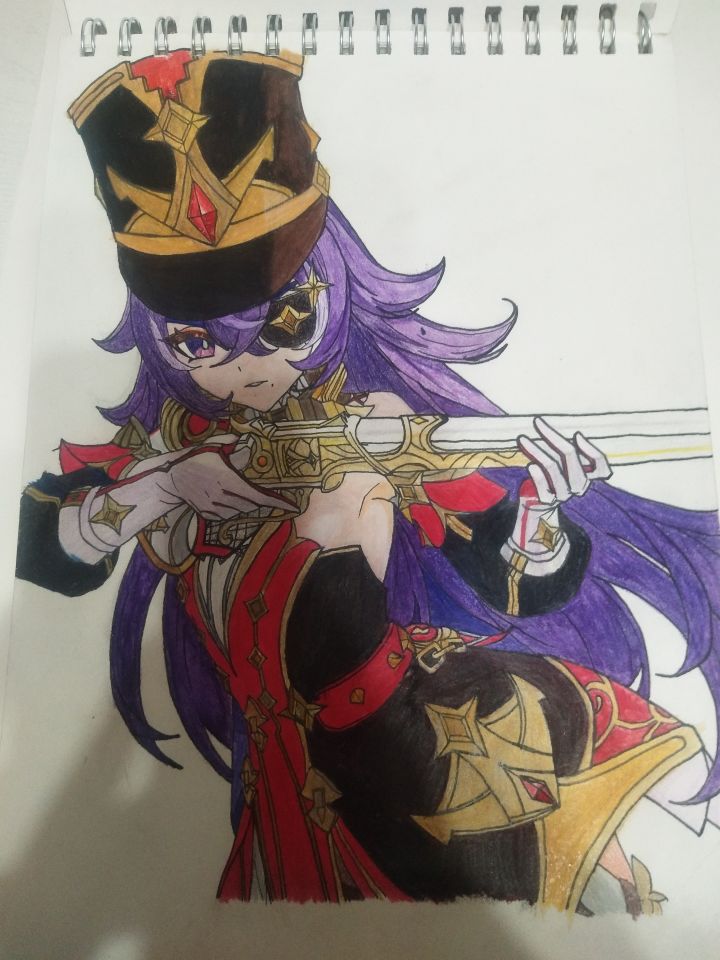 上一个我发了一个投票,决定我画什么,下个星期六不一定能画好,还请期待哦 #原神 夏沃蕾圆满画完啦,彩铅找不到那种金属的铜色,我拿了好几根彩笔才勉强合出来这个颜色,虽然还是不像,但勉强能看吧,已经尽力了,有没有哪位老师告诉我铜色要怎么画,我现在最愁的就是这个色