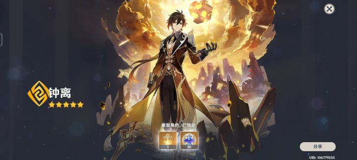 我170抽大保底出的心海,结果本来想垫下池子,结果6抽出了个甘雨