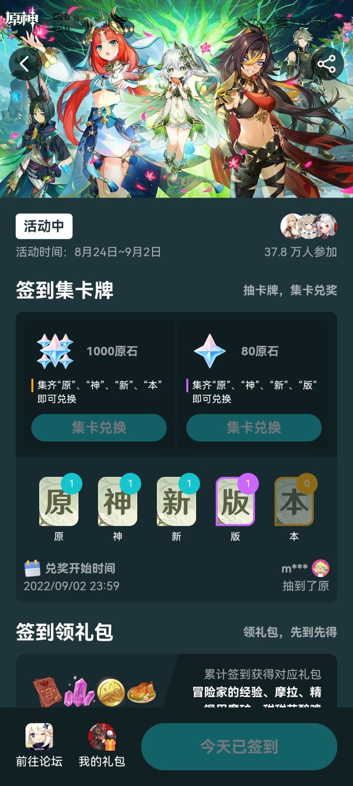 原神签到活动,有人抽到“本”了吗?