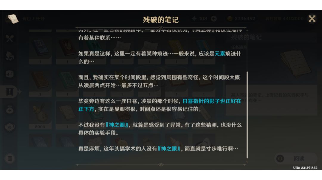 不败之境的不败传说。(时间调整至,凌晨五点前,元素视野扫描日晷)