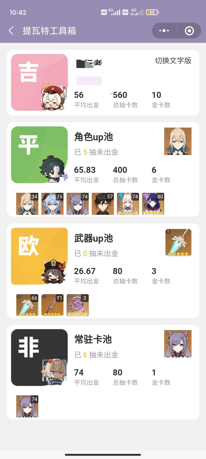 第一个双黄,买车票欧洲一日游深渊心海感电打漂浮灵时,飘来飘去太烦了,奥兹做不到大佬的一口一万,就干脆抽个雷神一刀秒,结果垫了75还没出,脑子抽了氪了人生第一个648,还好没歪,武器池双黄把我惊呆了,让我一瞬间觉得648血赚,然后狠狠给自己一巴掌,赚个毛啊,这次运气好,以后老老实实当30月卡党,准备万叶和胡桃决不再氪648,立个贴警示自己。