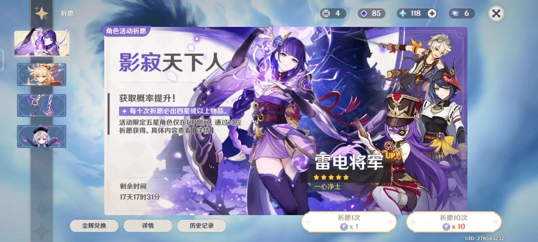 目前主c有魈,凌华,辅助有心海,水神,4.5下半抽啥