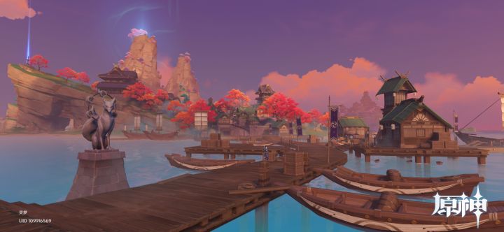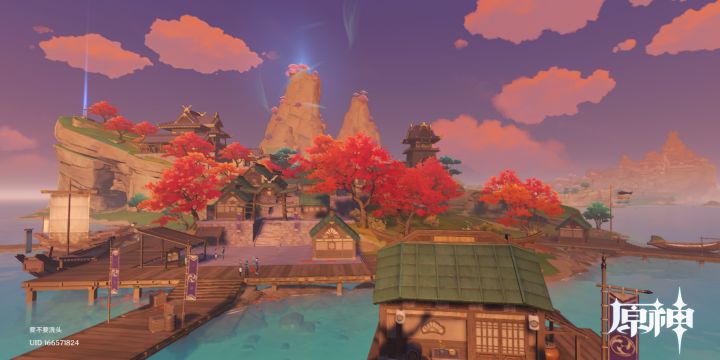 UID:107530472----------------------- 拍摄地点序号:1「越海初踏鸣神土渔船泊海港青瓦落红枫」 重回稻妻、落日与归来浪人----------------------- 拍摄地点序号:2「鸟居十二栏樱落华灯路」重游此地、心情却早已不同内心多了少许从容----------------------- 拍摄地点序号:3「少女