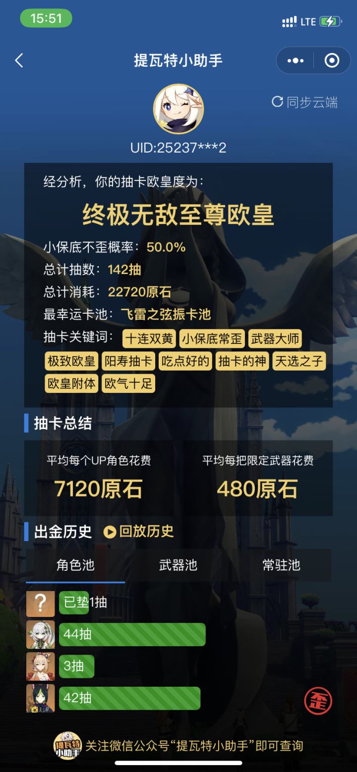 米哈游!爱死你了!😘就歪过两次!歪了20发之内必出up就没有大保底一说!
