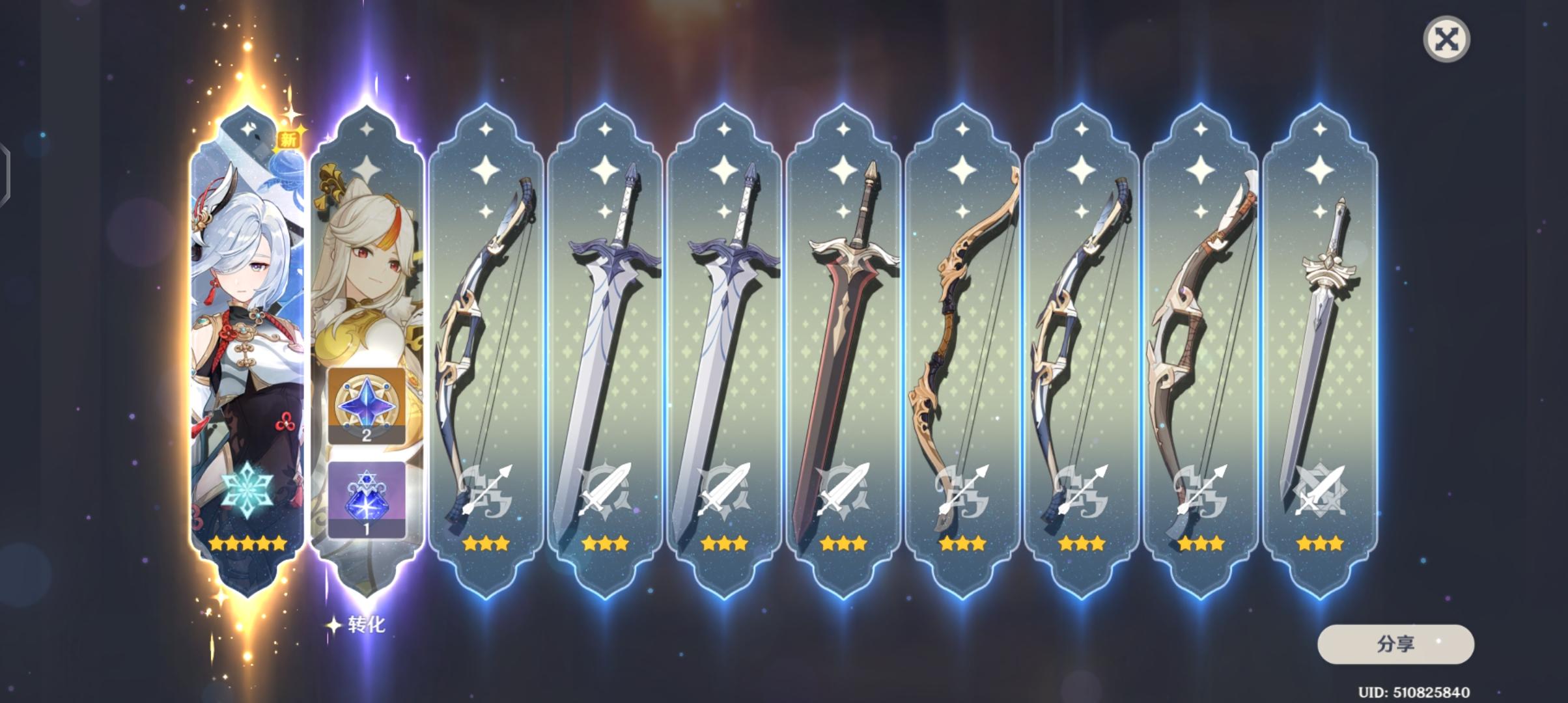 一发十连,申鹤降临。可以放在口袋里吃灰了😝😝😝