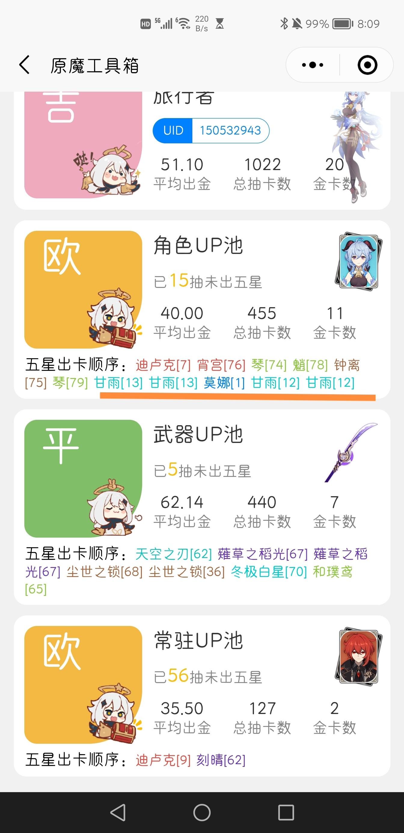 好唉,上月看到钟老爷子要复刻,这能害闲着?于是果断回坑。 回归奖励非常丰厚,外加上攒了半年的主线任务。这不,送了我足足有1w多原石 70来抽,出了两个钟离一个七七 😁