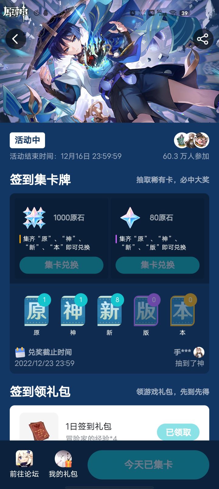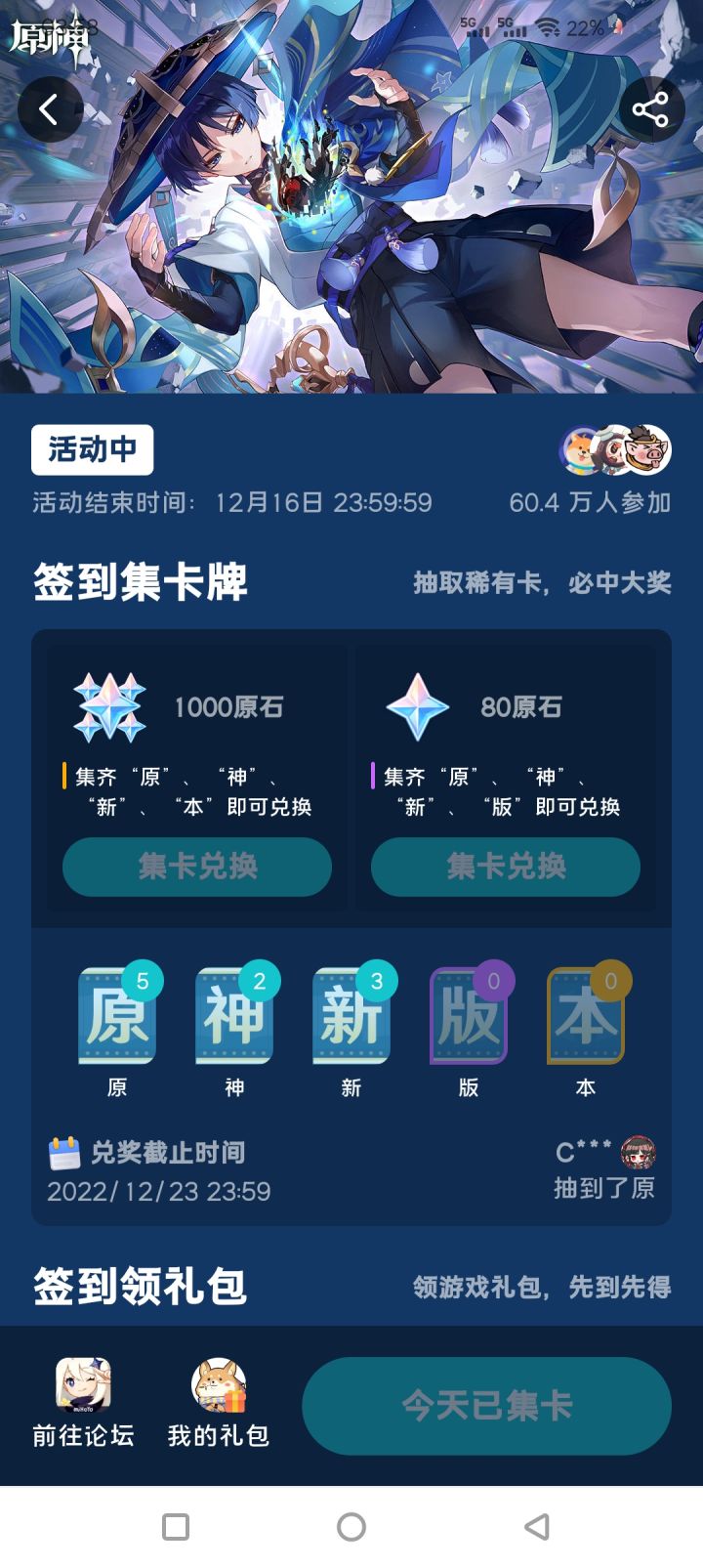 好耶,这个签到活动居然活动是真实滴,可惜知道的慢,只签到了五天,哈哈第一天就签了个 版 血赚80原石(doge