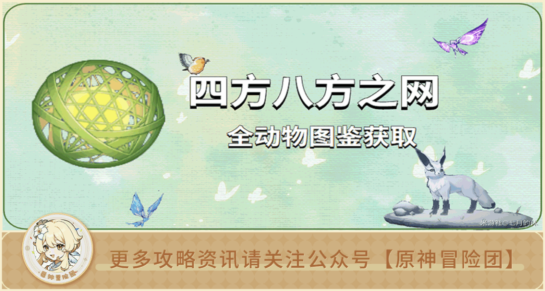 hello~大家好,这里是“七休”呀,「万端珊瑚事件簿·犬武者」活动已经结束了,大家心心念念的抓动物给尘歌壶增添摆设终于可以实现了。本期带来的是「四方八方之网」——全动物捕捉位置攻略。本文适用于强逼迫症玩家,每个图鉴都必须有一只动物!【食用指南】1. 第一周可以获取15个「四方八方之网」,任务10个,npc「若紫」处购买5个。2. npc「若紫」处购买,为每周限购5个,每周一04:00刷新