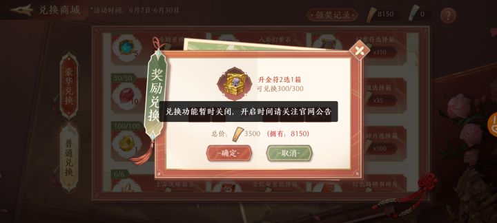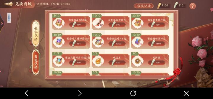 7点换的赤金箱 到现在还没到账 换一个别的东西立马就到账 同样 紫兵法 紫合击 紫碎片 全换了 就发了20个碎片 剩下的是被吞了吗?