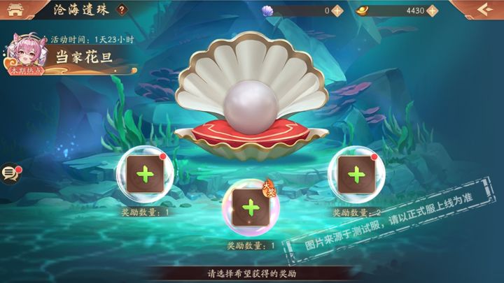 少年们,晚上好哟~本期开贝壳的大奖可不一般!苍金红颜小乔加入,乔乔在贝壳里静待少年们开启!祝大家统统好运,直接一发入魂开到我吖~精彩抢先看❀沧海遗珠,苍金大奖随心抽取❀本期热点:当家花旦-红颜小乔❀ 沧海遗珠活动参与时间:2023年12月15日00:00-2023年12月17日00:00活动天数:2天采珠及宝气值领奖结束时间:2023年12月18日00:00:00开启范围:开服大于